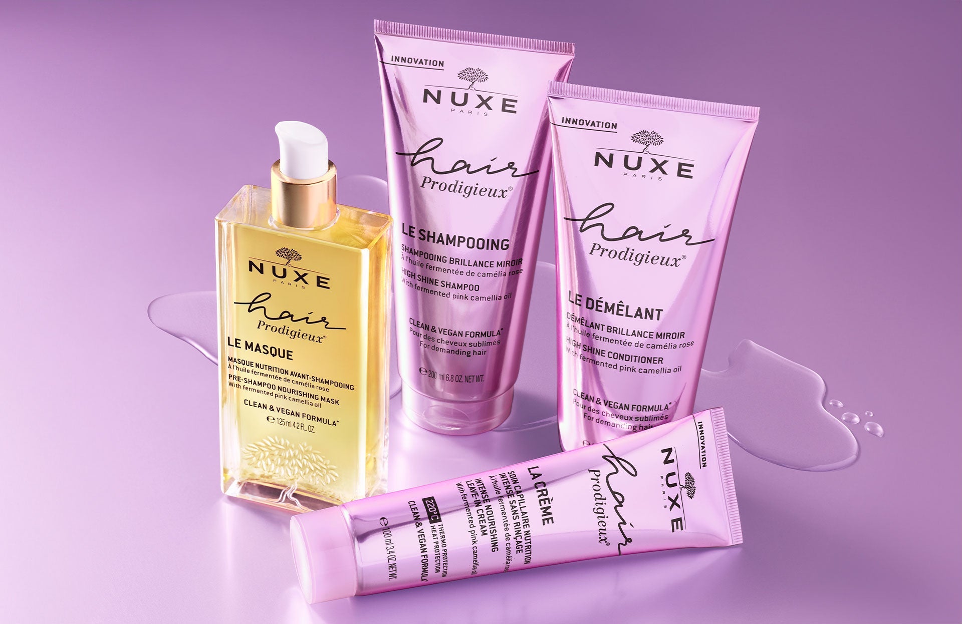 NUXE lance sa 1ère collection de soins capillaires, qui concentre une innovation de formulation majeure : l’Huile Fermentée de Camélia Rose. Elle est issue d’un process unique de fermentation qui galvanise ses pouvoirs de réparation et de nutrition sur les cheveux. Vegans⁽²⁾, sans silicone, sans sulfate (₁₁), ces soins sont formulés dans le respect des cheveux et les enveloppent d’une signature sensorielle unique. Fidèle à son audace, NUXE propose aussi un geste rupturiste ultra efficace pour réparer les cheveux, le Masque Nutrition Avant-Shampooing.