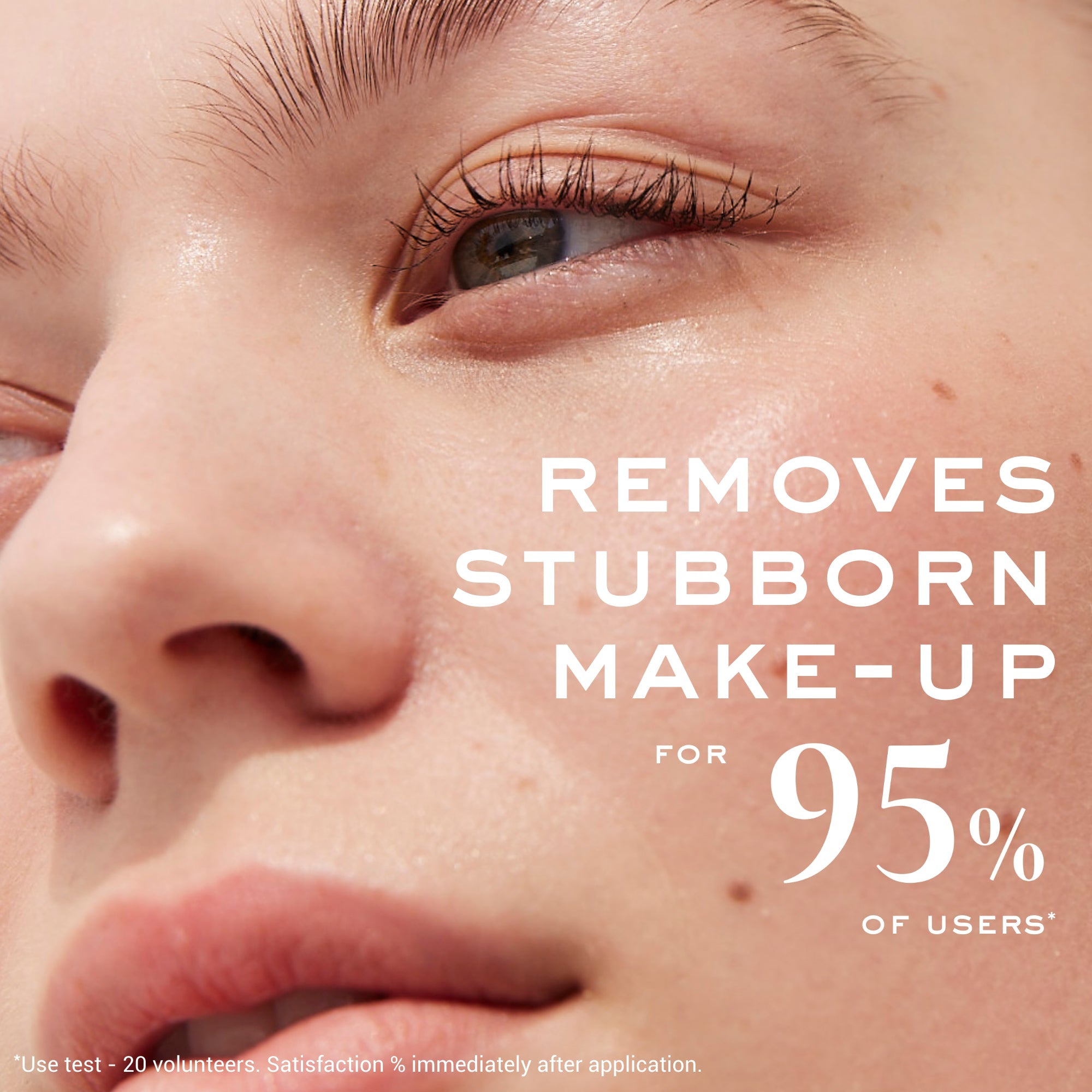 Le maquillage tenace, waterproof est éliminé pour 95% des volontaires.⁽¹⁾